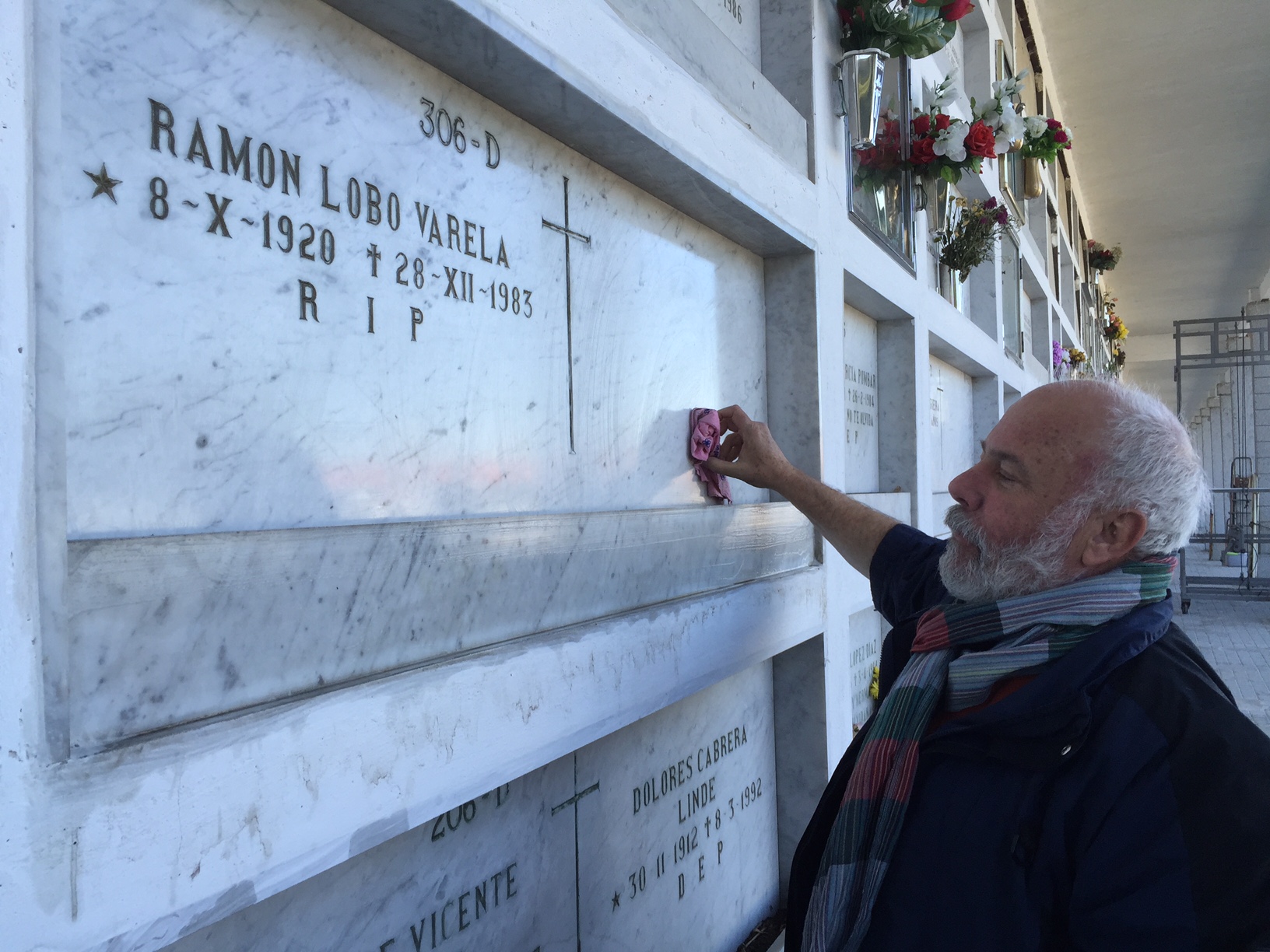 Mi padre era franquista y tal vez, tan muerto como está, no haya podido desprenderse de sus prejuicios con las ideas y los colores. Ahora parece una tumba acompañada, como si de este lado de la vida hubiera gente que se preocupa del que está al otro lado de la frontera.